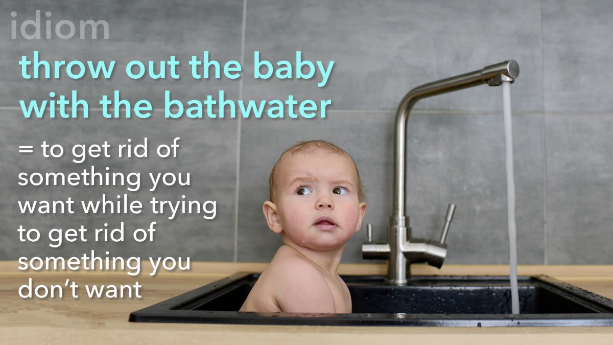 The phrase is often used in the negative as a. Do not throw the baby out with the bathwater is an expression for an avoidable error in which something good is eliminated when trying to get rid of something bad or in other.