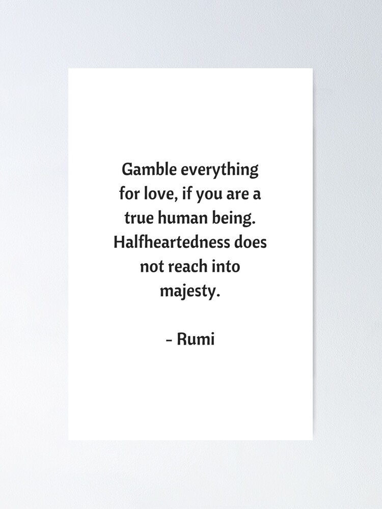 Love is a gamble and your heart is the dice. Gamble everything for love if you are a true human being. Love renders all our plans and all our intentions a great big gamble.