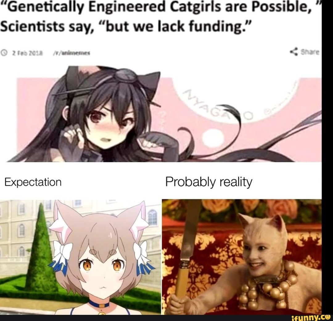 UMARUChan 24 may 2019. Even if it is possible to create such a specimen it is practically impossible to sustain the species naturally. Genetically Engineered Catgirls are Possible Scientists say but we lack funding. Harvested_2017 22 may 2019. Genetically Engineered Catgirls are Possible Scientists say but we lack funding genetically engineered catgirls are possible scientists say lack funding. Splice humans to get catfolk. Braving a funding ban put in place by Americas top health agency some US. Genetically Engineered Catgirls are Possible Scientists say but we lack funding popular memes on the site iFunnyco elonmusk celebrities catgirl elonmusk elonmeme whyarewenotfundingthis genetically engineered catgirls possible scientists say. Study for a cyberpunk inspired advert based on the popular genetically engineered catgirls meme.