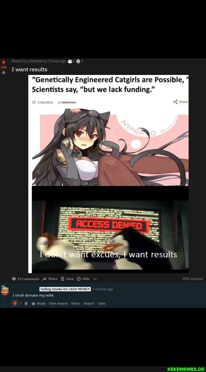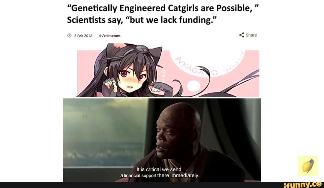 Elonmusk anime animu ifunncleanup featureworthy lol dank nice genetically engineered possible scientists say lack funding. Harvested_2017 22 may 2019. We deliver faster than Amazon. Images GIFs and videos featured seven times a day. Genetically Engineered Catgirls are Possible Scientists say but we lack funding genetically engineered catgirls are possible scientists say lack funding. Study for a cyberpunk inspired advert based on the popular genetically engineered catgirls meme. Genetically Engineered Catgirls Are Possible But We Lack Funding Popular.