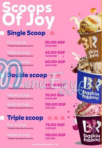 Baskin robbins menu. Or get one of each. قائمة وخط ساخن مطعم باسكن روبنز Delivery Menu - hotline restaurant Baskin Robbins Egypt. Top Rated Items at Baskin-Robbins CA Chocolate Mousse Royale 1342.