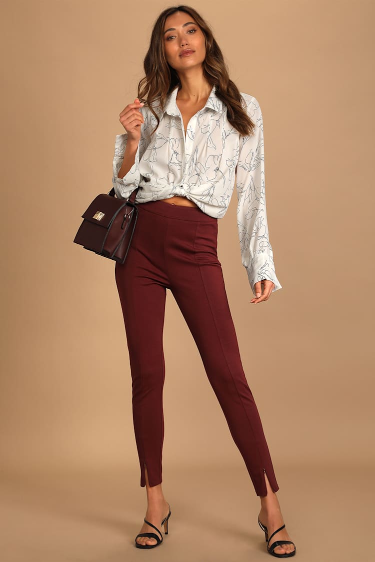 Ad Update your closet today. Zip and Button Closure. At Saks OFF 5TH. Medium-weight ponte stretch knit shapes these trouser pants that have a high banded waist and skinny pant legs with seam detailing down the center. Legs with sewn in creases and a zip at the back of the hems. Slim style features an elastic waistband with centre back zipper panelled leg with side zipper opening at hem. Brown Zip Hem Pants 19000.