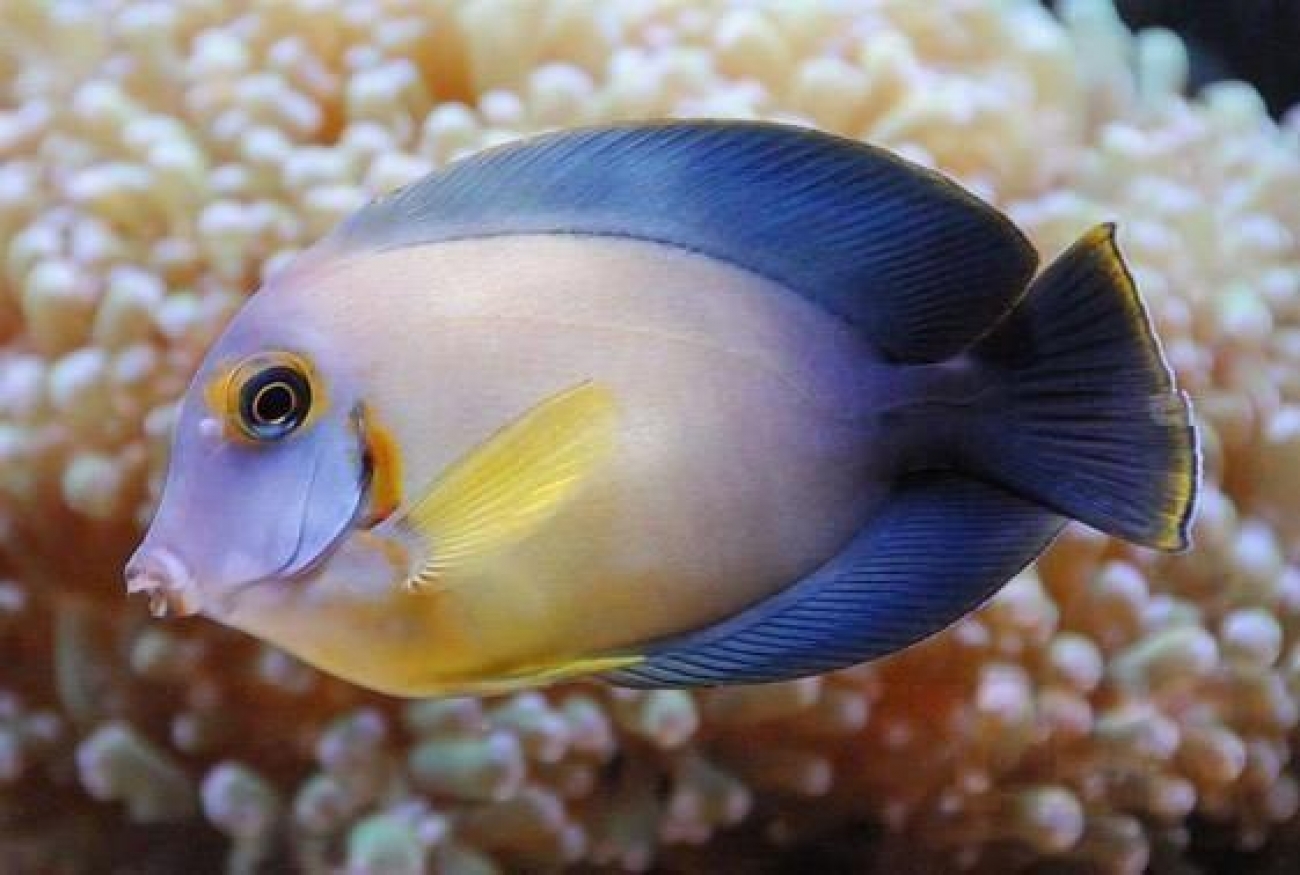 The Mimic Lemon Peel Tang also known as the Mimic Surgeon or Chocolate Surgeonfish has an oval yellow body while a juvenile.