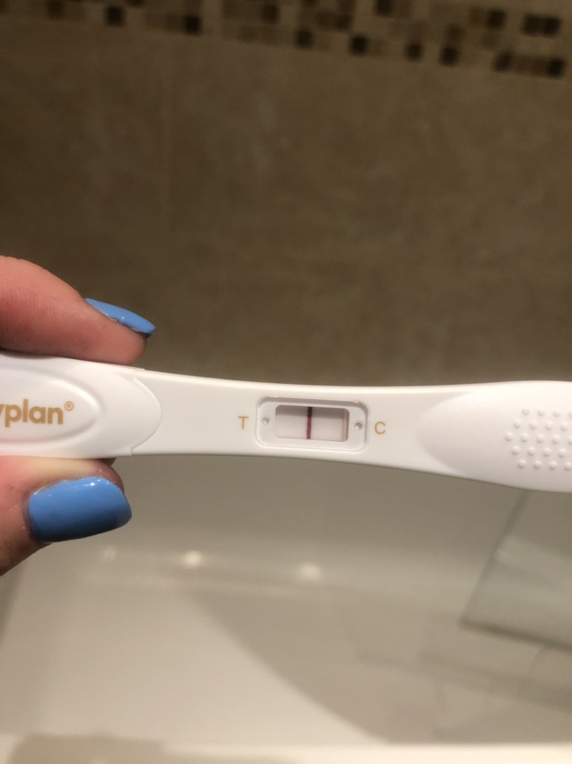 If the test shows a single pink line it means that the test is negative and the woman in question is not pregnant. It does not mean your pregnancy is in danger. Most instructions provided with the tests will explain the possibility of a faint line and what it means and in most cases it will be a positive result. The linea nigra appears because of high levels of hormones like estrogen and progesterone during pregnancy which can make some areas of the skin look darker. The control line took a while to come but that was vertical. If a test line appears without you being pregnant it is a false positive pregnancy test. As a result the test may start to display a positive line. However if the test shows two adjacent pink lines the test is positive and the woman is pregnant. This line will appear whether or not you are pregnant and ensure that the pregnancy test is working.